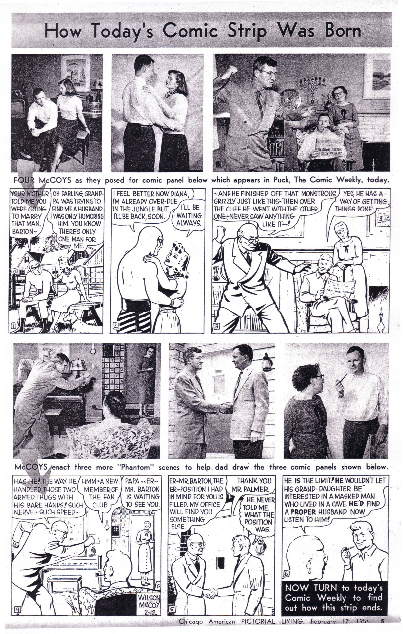 Wilson often used his own family as models for his illustrations, and the behind-the-scenes making of this strip was featured in the newspaper article below.